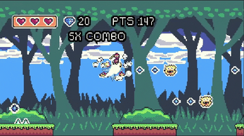 ataque os inimigos para pegar combos altos e impulso para chegar nas partes mais altas